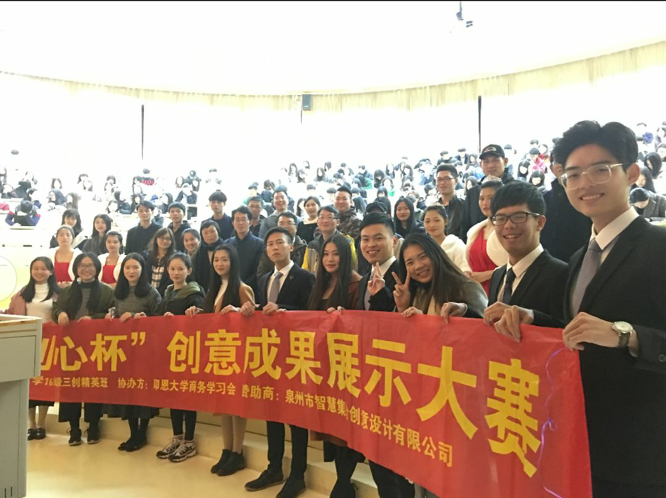 为认真贯彻我校“学会做人,守信笃行。学会做事,创业有成”校训,激发我校学生创新创业热情,营造校园创新创业氛围,1月9日晚,首届beat365官方网站“创心杯”创意成果展示大赛在第一教学区和昌楼致知讲堂顺利举办。我院院长翁景德、常务副院长兼党总支书记许惠铭以及泉州智慧集合创意设计有限公司林志民先生以及beat365官方网站各院系老师、辅导员和三百多名学生共同出席了本次活动。