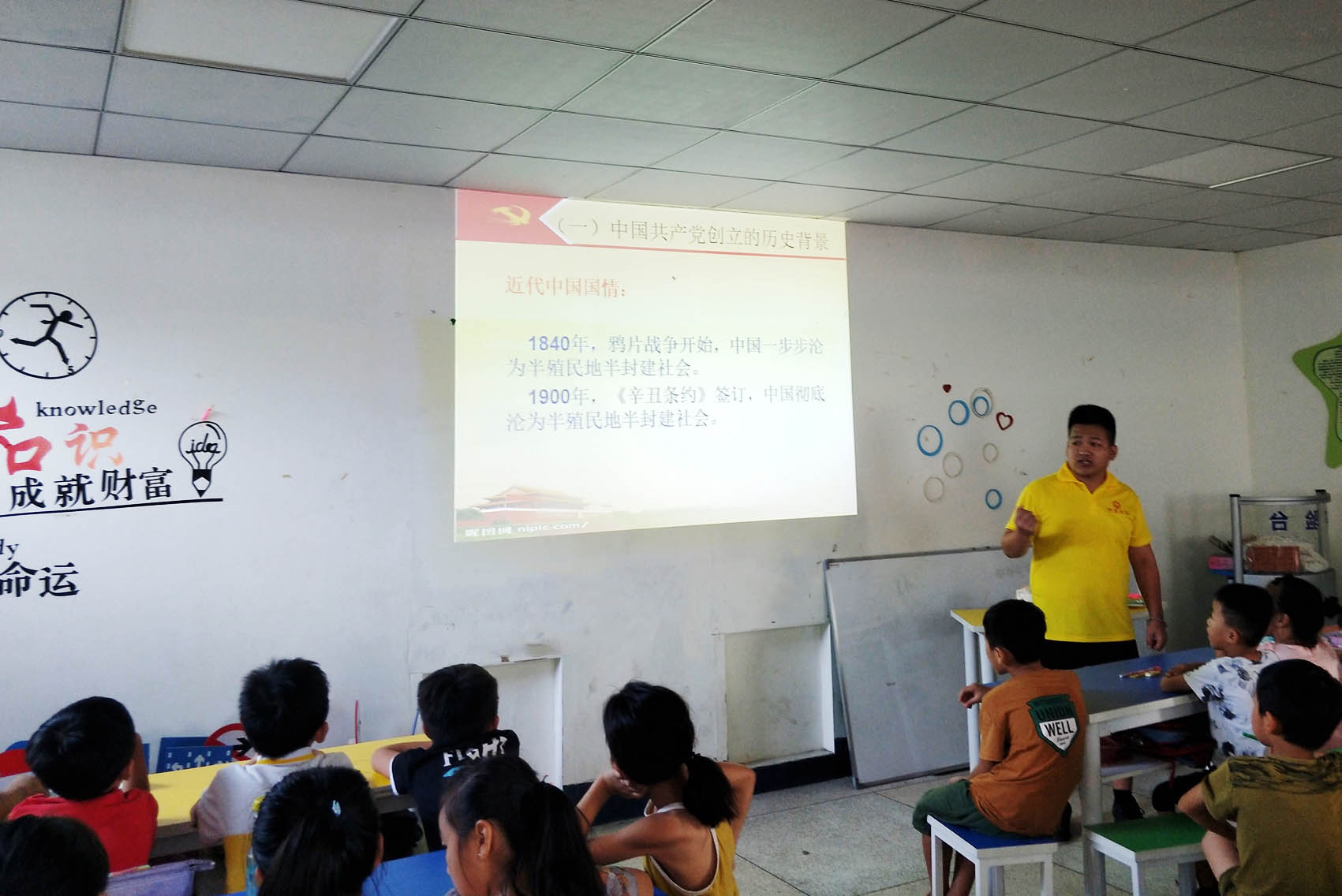 活动中,实践队成员通过播放视频的形式,全面回顾建党97年来党团结带领各族人民进行革命、建设和改革事业的光辉历程,将党的声音传递给小朋友,让他们更加了解党、亲近党。同时实践队员还让小朋友描述党在他们心中的形象。小朋友们踊跃发言,纯真的表达了对党的热爱与拥护。