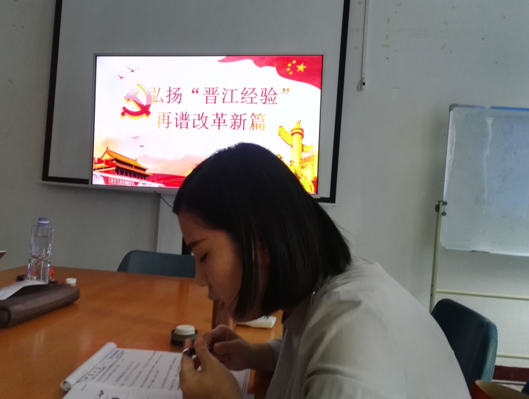 10月24日下午,beat365官方网站教工党支部于曼谷楼206会议室召开支部会议,学习研讨《关于进一步激励广大干部新时代新担当新作为的意见》。同时,李淑娟同志为支部成员作了《弘扬“晋江经验”,再谱改革新篇》的心得分享。