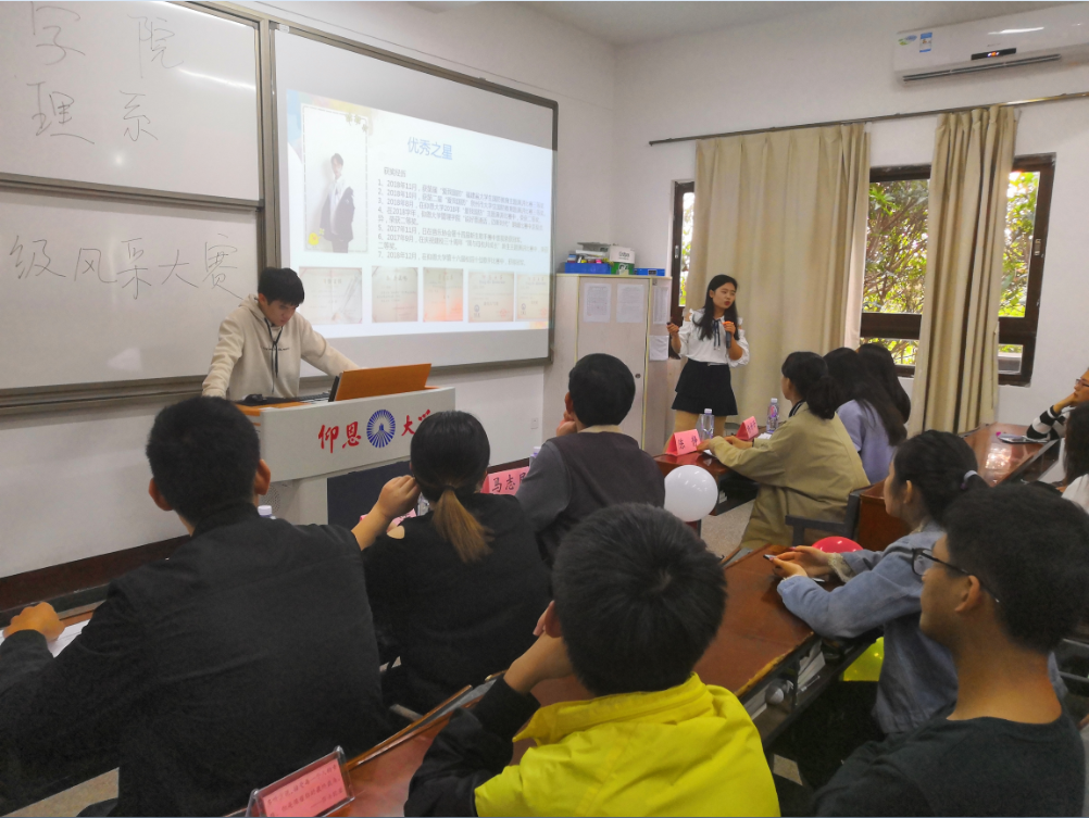 班级展示风采 活动中,各参赛班级集思广益,按照活动主题内容精心制作了ppt课件,向在场师生展示了入校以来的学习、生活以及班级开展的丰富多彩的文体活动。一幅幅生动的画面,体现了同学之间团结与友爱,展现了大家朝气蓬勃的精神风貌。图片与音频的完美结合,给评委及观众留下了深刻的印象。经过角逐,最终2016级行政管理1班获得了第一名,2017级工业工程1班和2018级工业工程1班的精彩表现也获得了评委们的一致赞誉。