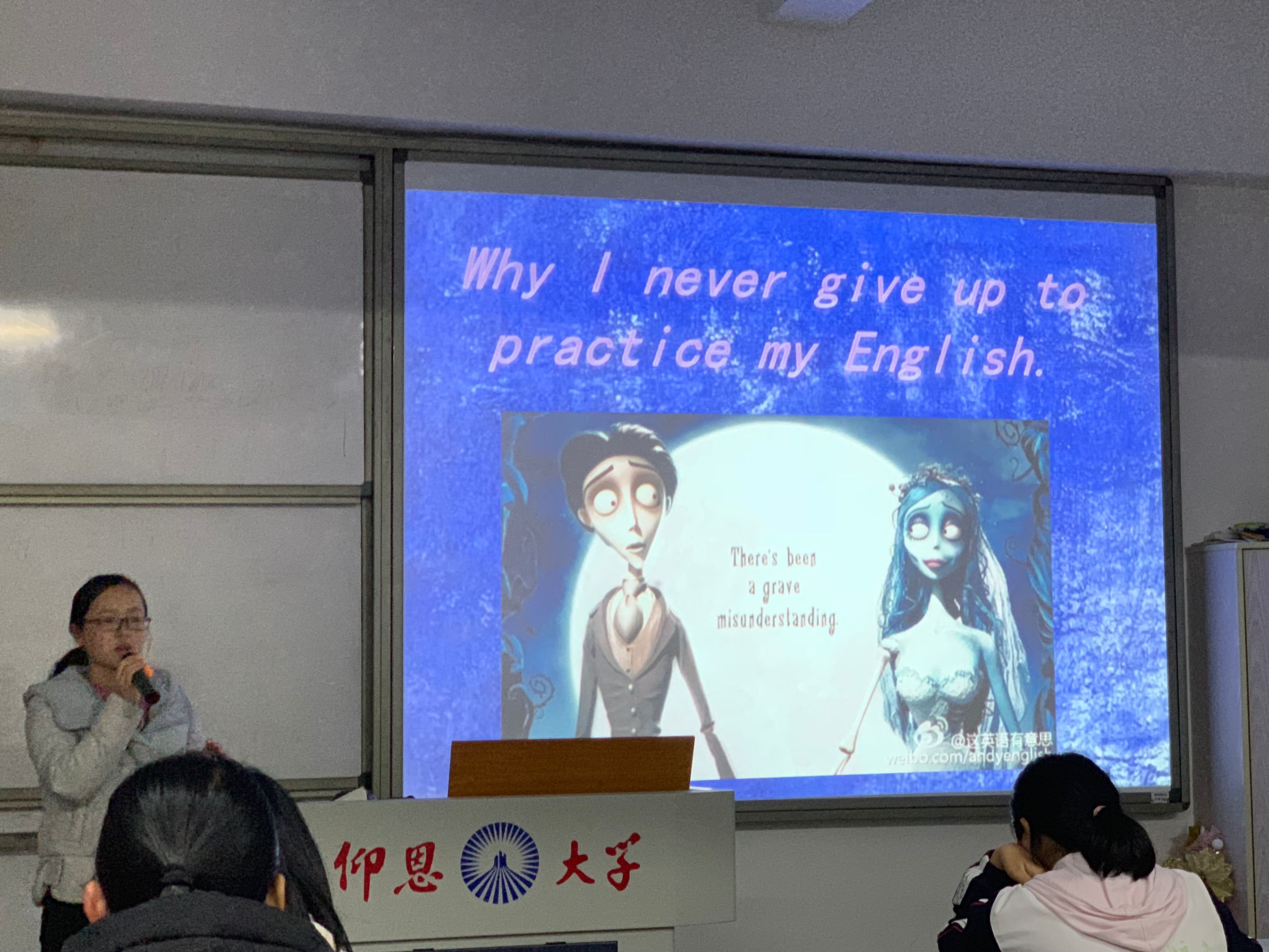 分享现场 活动一开始主持人简单的介绍了这次的主讲同学,并表达了这次活动的主要意义以及未来期望。在分享会上四位成绩优异的同学分别上台分享自己的学习心得与读书技巧。在之后的自由交流阶段,班上同学踊跃提出自身在学习英语过程中存在的问题,四位同学更是针对英语学习过程中的环境、方法及练习展开了深入的剖析与解答,不同的见解和深入浅出的介绍使大家受益匪浅。随后大家根据自身存在的问题展开了自由讨论。