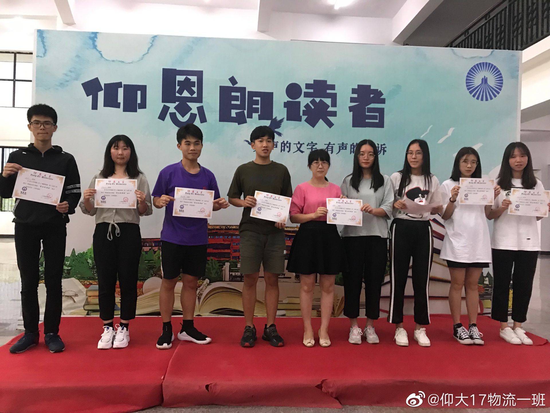 5月20日下午,17物流管理一班在beat365官方网站图书馆召开以“奋斗的青春最美丽”为主体的诗歌朗诵会,班主任姚秋珍老师和图书馆李老师一同加入。此次活动旨在回顾五四、发扬五四精神并宣传诗歌文化,让同学们在诗歌的海洋里畅游,一起回到那个充满热血和激情的年代。
