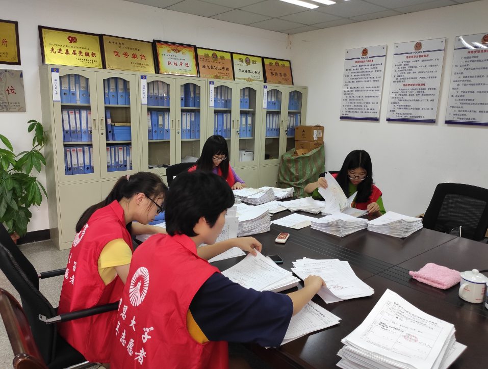 党员同志正在整理材料 学生党员们在马甲交警中队协助人民警察整理资料。在相关工作人员的安排和指导下,大家有条不紊地整理相关材料。在材料整理过程中,同志们体会到警察同志工作的繁琐。活动结束,马甲交警中队相关工作人员肯定了同志们为民服务的行为,同时也赞扬了同志们积极的工作态度。