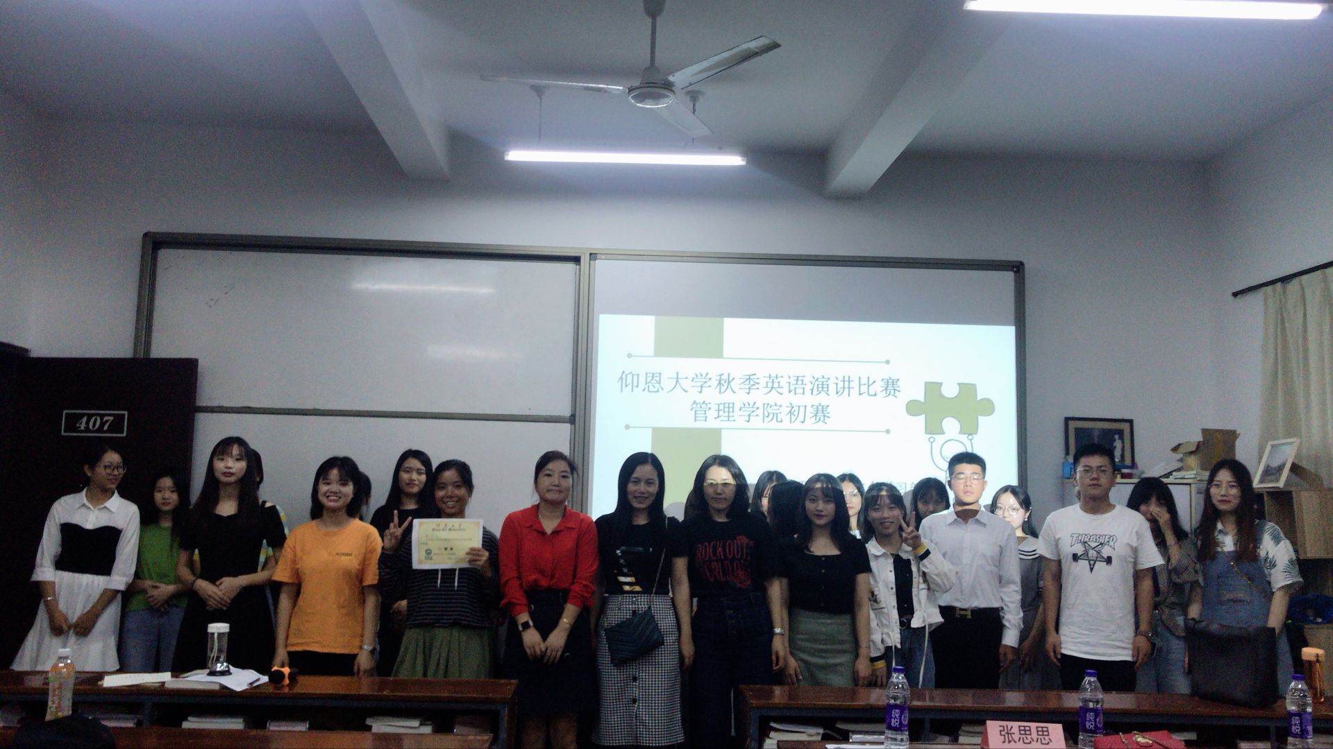 合照 最终,张一灵获得一等奖,刘千欣获得二等奖,陆婷婷、林建泽、张孝诚获得三等奖。通过此次英语演讲比赛让同学们意识到英语口语的重要性。(王茂林/文图 审核:杜心田)