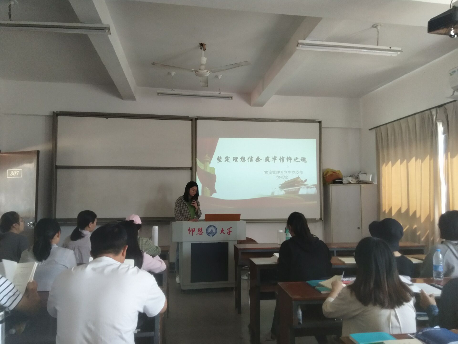 为深入推进“不忘初心、牢记使命”主题教育,物流管理系学生党支部于10月22日中午在共和楼307召开《习近平关于“不忘初心、牢记使命”论述摘编》之“坚定理想信念,牢记信仰之魂”专题学习。活动由支部组织委员徐彬钦同志主持,支部全体成员参加。