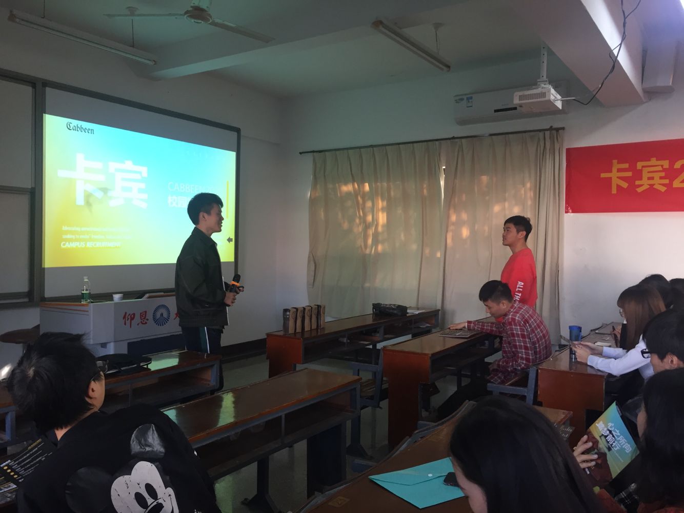 为搭建应届毕业生与用人单位面对面沟通交流的平台,11月27日下午,我院于第一教学区共和楼204举办卡宾服饰校园招聘宣讲会。