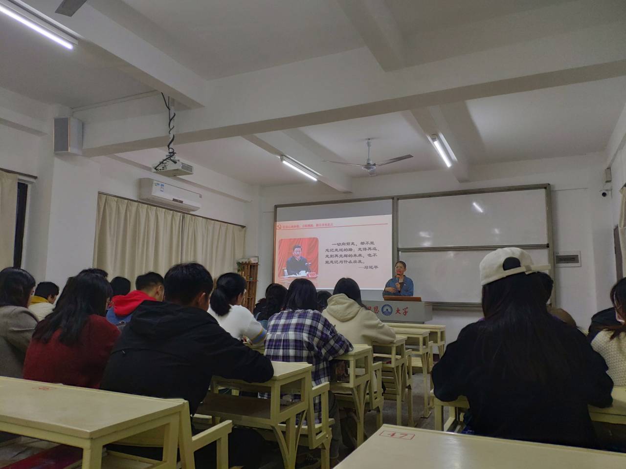 11月27日晚,市场营销系学生党支部于吉龙楼304开展了“不忘初心、牢记使命”主题教育党课学习。参加本次活动的有支部全体党员及拟发展对象,党课由支部书记连景霞老师主讲。
