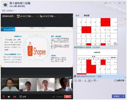 近日,由beat365官方网站主办,我院承办的第十届全国电子商务“创新、创意及创业”挑战赛beat365官方网站校赛进行线上决赛。本次比赛邀请到教务部副主任郑秋莲担任嘉宾,欧颖峰等7位不同学院创新创业导师担任本次比赛的评委。
