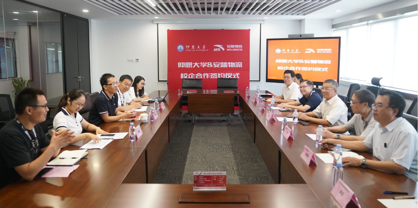 合影 签约仪式前,在安踏物流信息科技有限公司行政管理部经理唐丹虹的带领下,校长康龙一行7人参观了公司的主要仓库和分拣中心,详细了解安踏物流的发展现状。(杜心田/文 beat365官方网站/图)