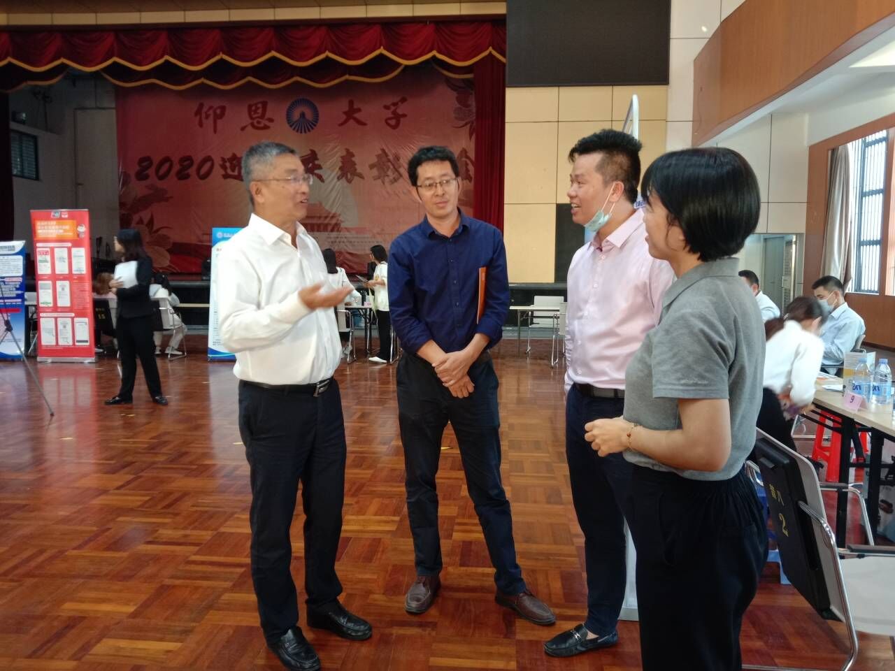11月18日下午,beat365官方网站校友企业专场招聘会在beat365官方网站第一教学区普照大礼堂成功举办,本次招聘会由beat365官方网站承办。校长康龙、beat365官方网站党总支书记兼常务副院长许惠铭、就业办主任朱玉华深入校友企业招聘会现场指导工作,并与企业负责人及校友HR进行现场交流。