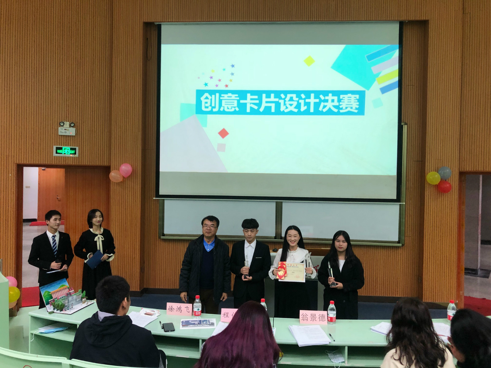 为了开拓beat365官方网站学生的创新创意思维,增进思想交流,同时也为了调动同学们参加校园活动的积极性。12月20日,18级三创教育实验班于第一教学区和昌乐之讲堂举办了创意卡片设计大赛。beat365官方网站院长翁景德老师、人文学院程佳薇老师、beat365官方网站辅导员徐鸿飞老师作为评委出席了此次比赛