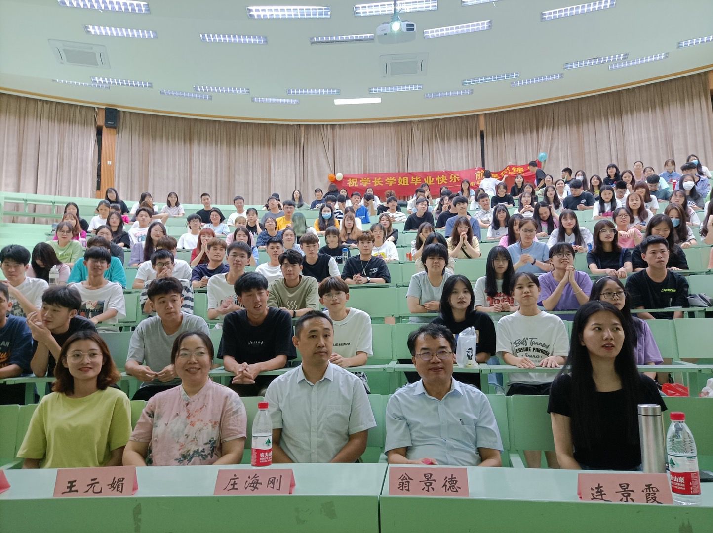 活动开始,由翁景德院长进行了开场致辞,并祝贺本届毕业生鹏程万里,毕业快乐。交流会中,李嘉文学长进行了考研方面的经验分享,让同学们加强了对考研的认识,掌握了一些相关的考研的技巧。刘振涛学长风趣幽默地给同学们分享了就业经验,从简历、求职规划与心态等多角度向同学们分享了自己的心得体会,强调要不言放弃、再接再厉。学长们的经验感染着每一位同学,台下掌声不断,反响热烈。由庄海刚院长为本次交流会作了总结性发言,提出同学们要尽早明确自己的目标,做好职业生涯规划。在活动中,精彩的抽奖互动环节使得整个交流会节奏轻松愉快,同学们纷纷表示获益匪浅。