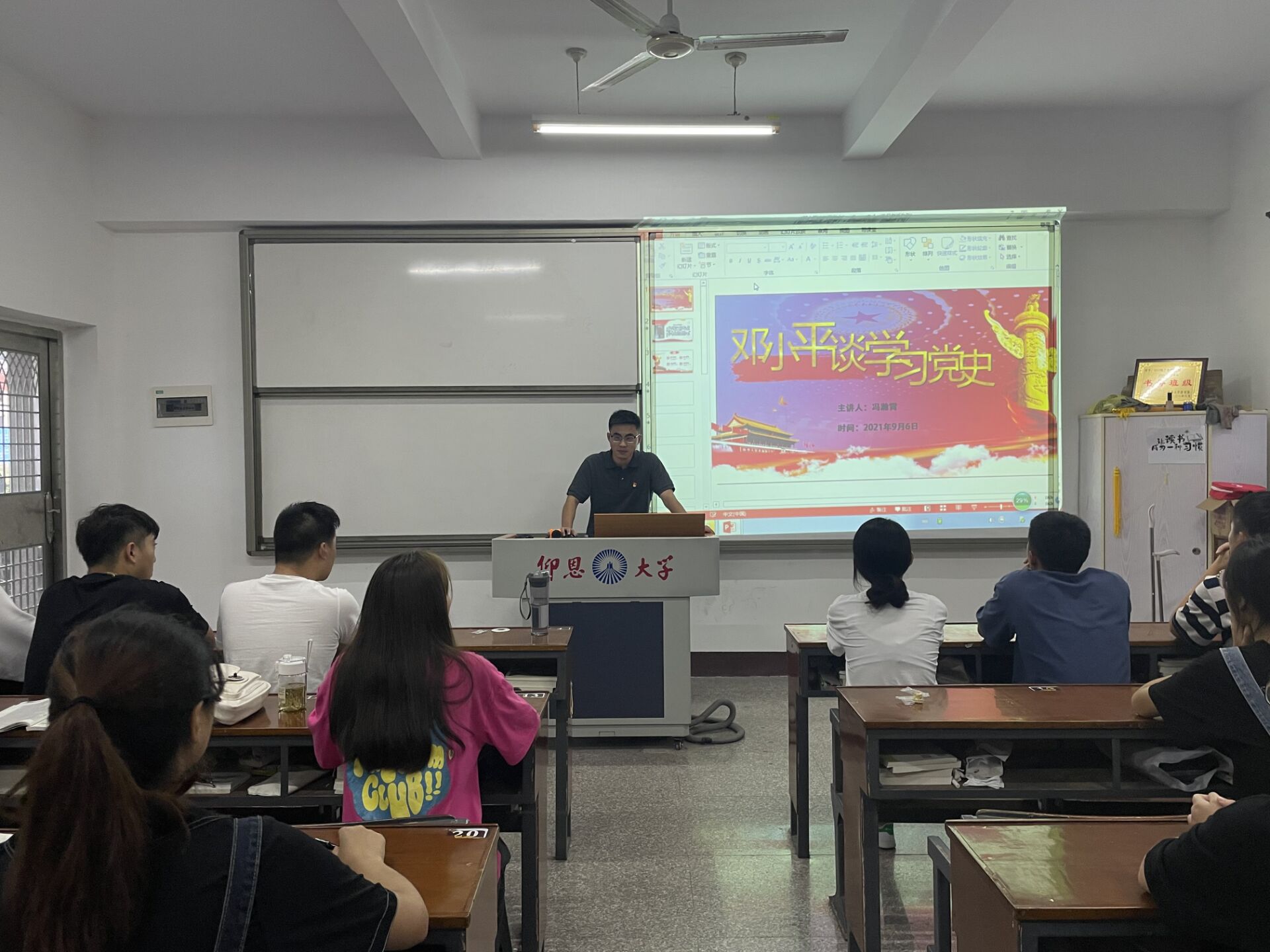 为深入学习宣传贯彻习近平总书记“七一”重要讲话精神,工商管理系学生党支部于09月06日下午在beat365官方网站第一教学区共和楼213,支部书记冯瀚霄以“邓小平谈学习党史”为主题,讲授了一堂主题鲜明、深刻生动的党史学习教育专题党课。