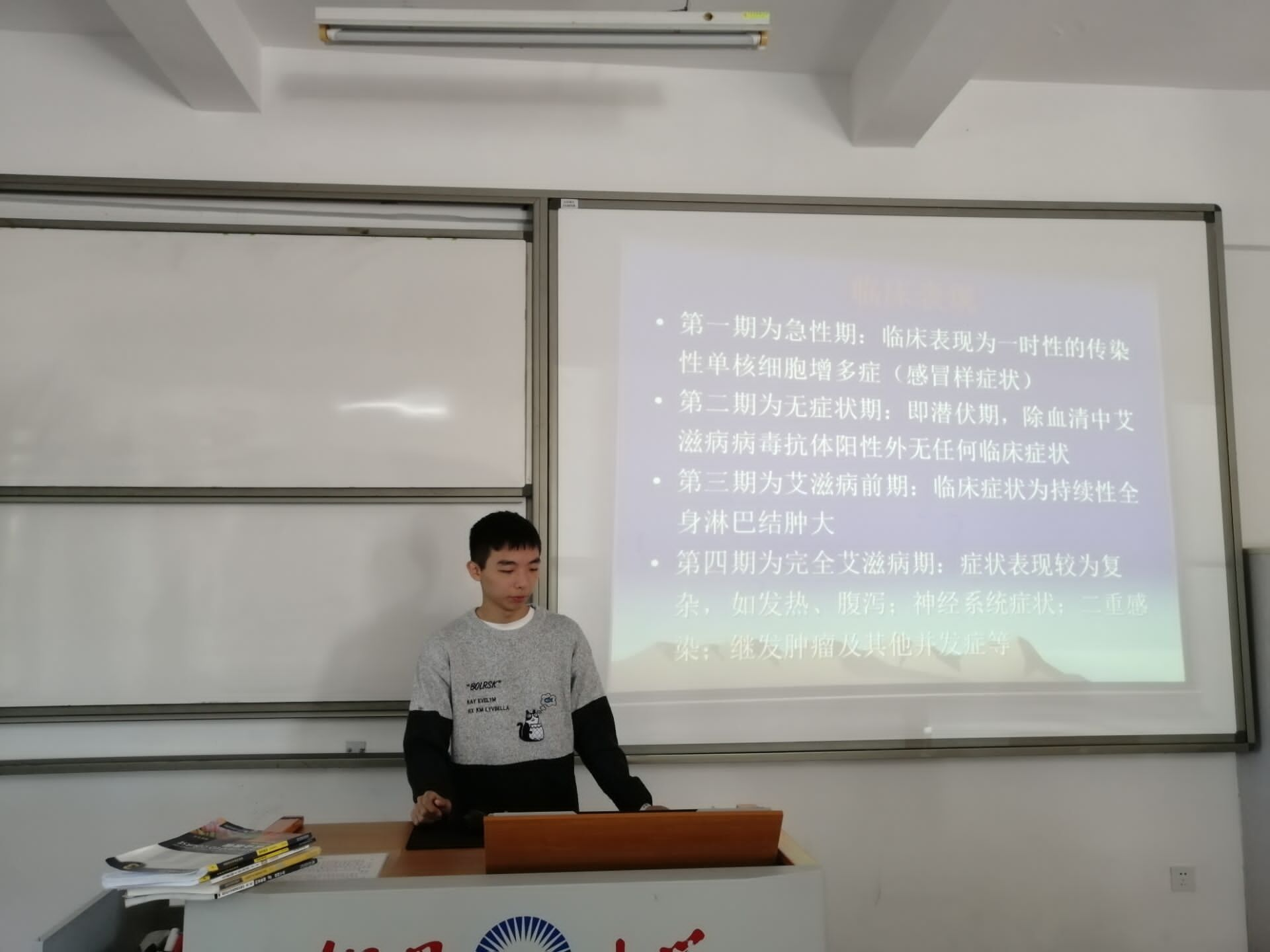 班级开展防艾知识宣传 讲座结束后,参加该讲座的物流管理系同学们作为本系本班的防艾宣传大使,在班级内部也开展了一次防艾知识转授宣传,将自己所掌握的知识积极地传播给更多的人,让更多的同学能够参与其中,确保宣传教育活动落到实处。