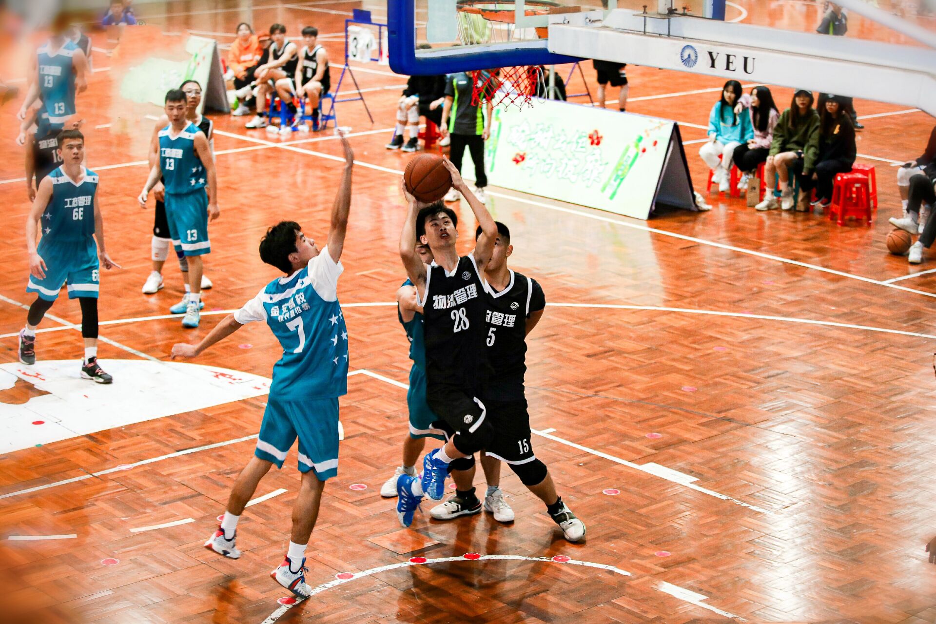 比赛紧张而激烈地进行,双方比分一度接近,场边的啦啦队口号越喊越响。物流管理学系的队员们也势如破竹,频频强攻,场面异常火爆。每个队员都积极跑位,为队友作掩护,还时不时有精妙的传球、漂亮的配合和精彩地上篮,精彩的对决不时引发在场观众的欢呼声。比赛过程中,裁判员秉公执法,严肃认真,尽自己最大的努力判决好每一个球,保障了比赛的公证性、连续性和观赏性。在经历两小时的激烈对抗后,最终物流管理系在此次新生篮球赛中荣获第二名。