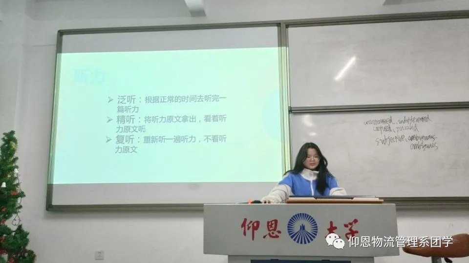 为让同学们更好的掌握四六级考试的各项内容和技巧。3月7日晚,物流管理系团学于beat365官方网站第一教学区吉龙楼502教室召开四级经验分享会。分享会上,林丽洪,苏晓琼,张佳靖三位同学分别上台分享了自己的学习经验。