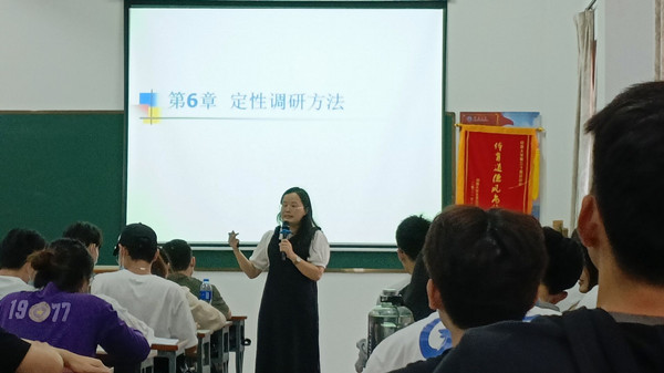 课堂上,张迎华讲授定性调研方法的内容,通过提问与学生进行互动,了解学生对知识点的掌握情况。同时,采取回答提问和课上做笔记加平时分的方法激励学生,鼓励同学们踊跃发言。张迎华教学形式灵活多样,课堂内容丰富多彩,在授课过程中将知识与现实结合在一起,将《仰恩之子》有效融入到课程思政,通过播放视频加深理解,给师生留下深刻的印象。