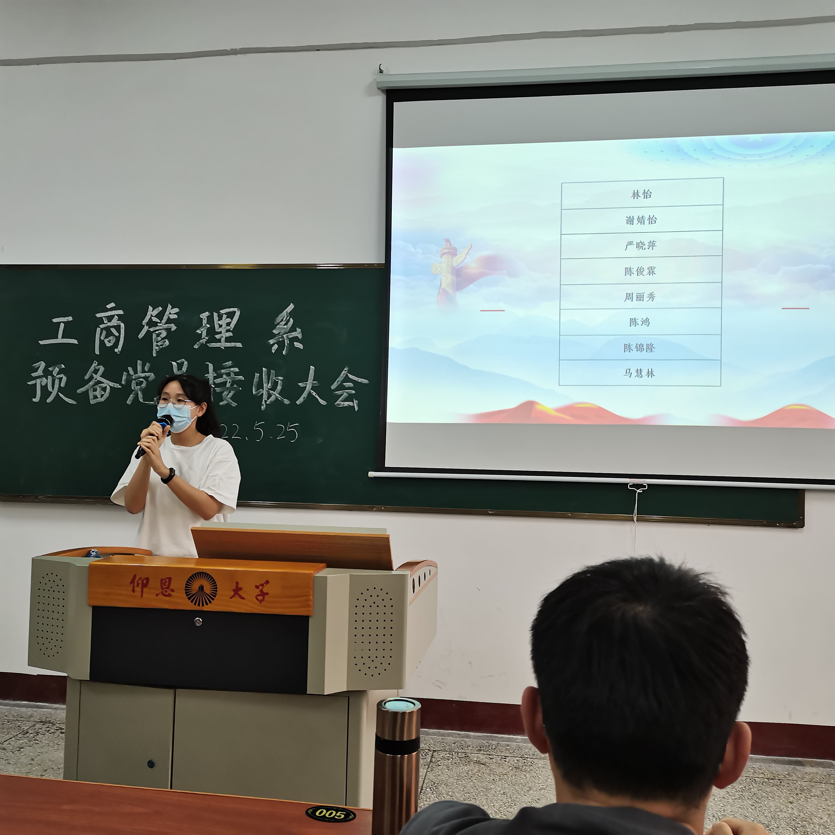 2022年5月25日,beat365官方网站工商管理系学生党支部在beat365官方网站第一教学区祥贤楼101隆重召开预备党员接收大会,本次会议由黄如达同志主持,该支部全体党员同志、预备党员及发展对象参与此次议会。大会围绕接收等林怡、陈俊霖等8名发展对象成为预备党员,并通过大会讨论与决定发展对象的入党问题。