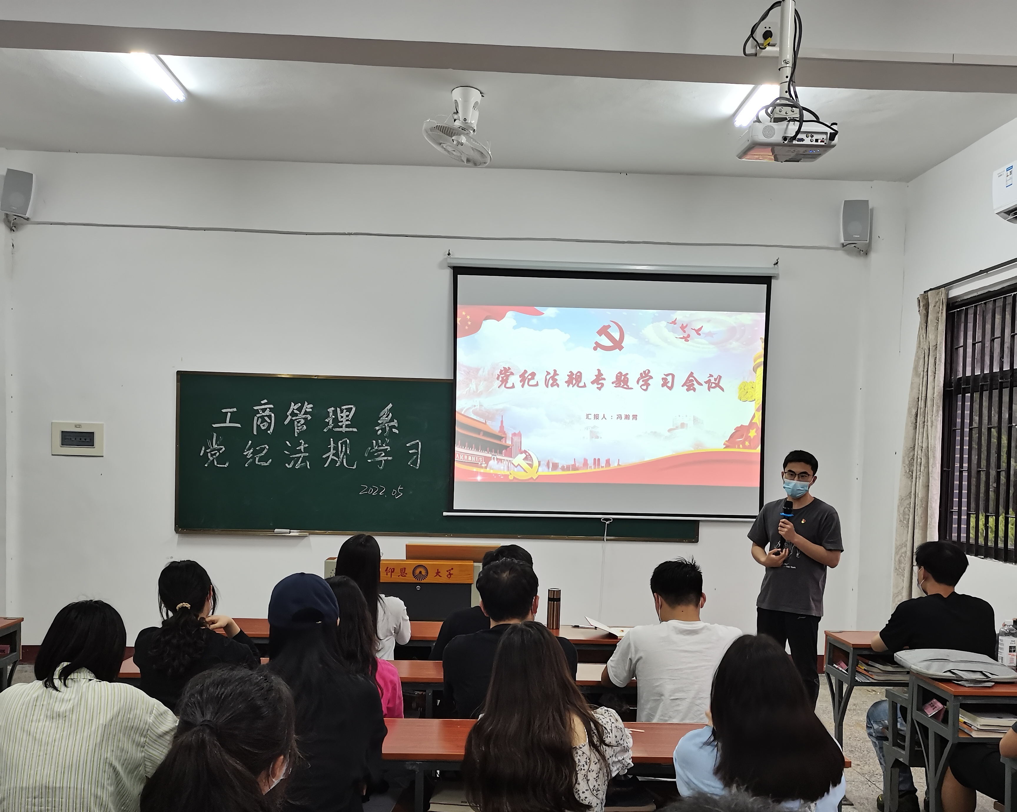 为深入开展反腐倡廉,牢固树立底线和红线意识,引导党员干部牢固树立纪律意识和规矩意识,坚守纪律底线,坚持依法依规履职尽责,为清廉建设打下坚实的理论基础。5月25日工商管理系学生党支部于祥贤楼101开展2022年党纪法规专题学习活动。