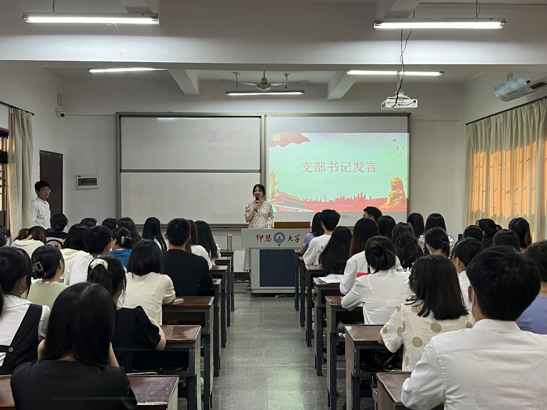 预备党员发言 会议最后,由支部书记连景霞老师进行总结发言,她对转正的同学表示衷心的祝贺,并给予殷切的希望,要求党员同志们要做到严于律己,主动亮身份,勇担当,从自身做起,从小事做起,发挥先锋模范作用。