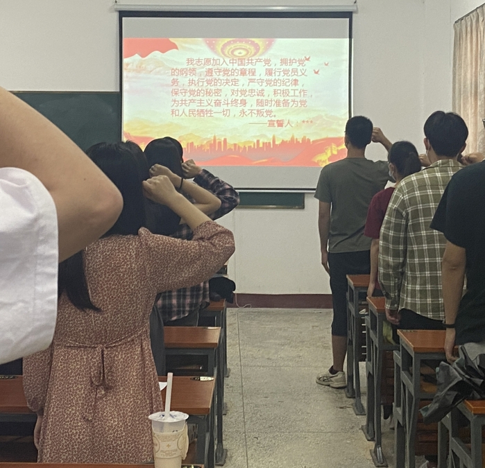 此次申请转正的8位预备党员是陈俊霖、陈鸿、周丽秀、陈锦隆、马慧林、林怡、谢婧怡、严晓萍。首先,由这8位同志宣读自己的转正申请,从思想、学习、工作和生活等方面,详细汇报自己在预备期间的表现,总结自身还存在的不足与缺点,表明修正自己的信心和入党的决心。接着,支部全体正式党员进行无记名投票表决,一致通过这8位同志如期转为正式党员。工商管理系学生党支部书记李超楠同志带领支部全体成员进行入党宣誓,通过宣读入党誓词,支部全体成员的理想更加坚定,同时也推进了大家在学史明理中坚守初心,牢记党员的使命。