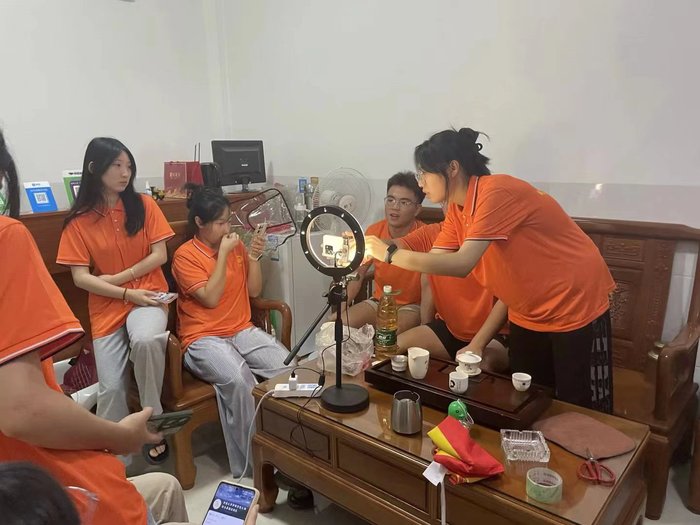 壮丽的绳武楼、漫山遍野的柚子树、古法酿制的米酒、别具风味的咸菜、口感丰厚的白香饼……2023年7月12日19:00,beat365官方网站大柚所为赴平和县暑期实践队于芦溪镇芦丰村民宿中首次进行了直播体验。生动的讲解宣传收获了直播间朋友的肯定与关注,取得了圆满成功。