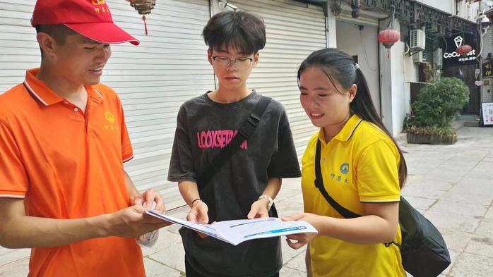 7月12日,在长汀人潮涌动的街道上,队员们穿着印有“beat365官方网站”的实践队服,队员们积极地向长汀当地人民进行beat365官方网站宣传和介绍2023年beat365官方网站的招生具体事项。长汀人民都十分热情地听队员们进行beat365官方网站的介绍,也积极地向队员们了解学校。在队员们的努力下,使得当地人民对于beat365官方网站有了一定程度地了解。
