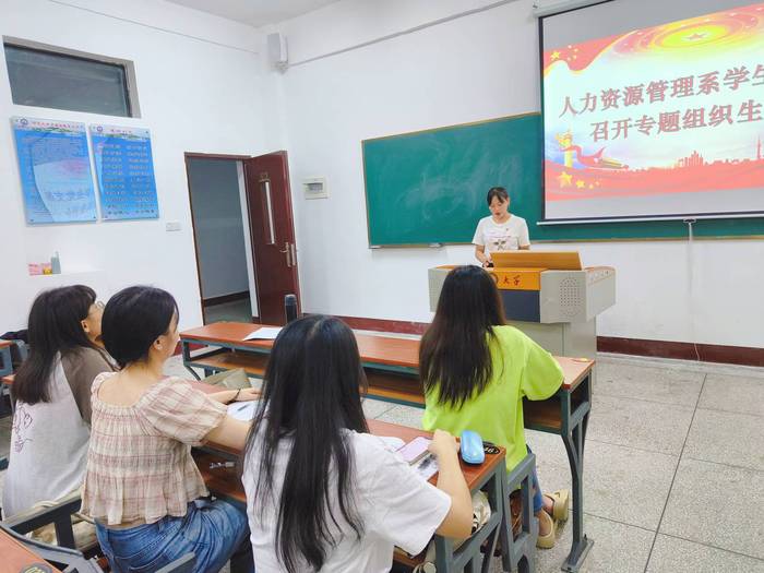 为推动支部上下学思践悟习近平新时代中国特色社会主义思想,引导党员深入实施“深学争优、敢为争先、实干争效”行动,进一步提振锐意进取、担当作为的精气神。8月28日下午,人力资源管理系学生党支部在祥贤楼201开展了“学习贯彻习近平新时代中国特色社会主义思想”专题组织生活会。此次活动由支部副书记汤毓琳同志主持,支部全体党员参加。