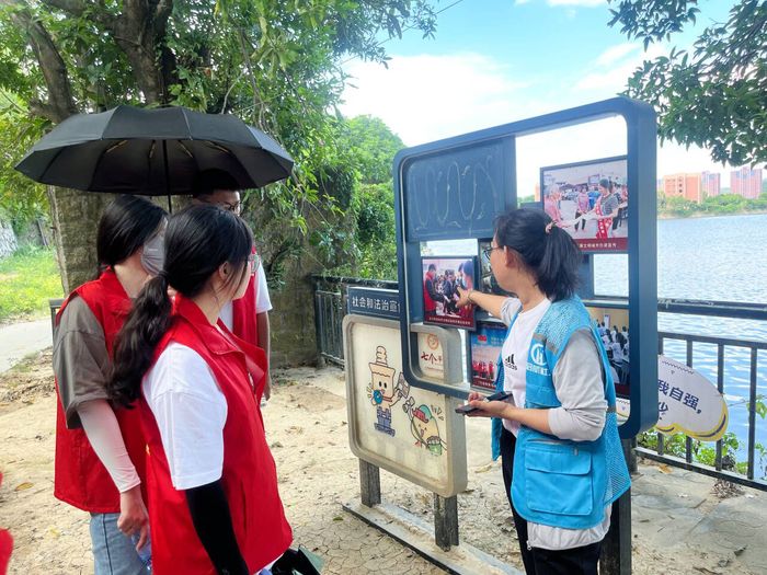 活动开始,党员志愿者们前往惠女水库沿路河段景观漫道,认真细致地察看河道卫生情况。志愿者们手拿着垃圾袋,有条不紊地清扫河道的每一个角落。一件件红色的马甲在河道边来回穿梭,汇成了一道靓丽的风景线。活动中,党员志愿者们尽职尽责,认真分发河湖长制、环境保护及垃圾分类宣传手册,并耐心解答居民提出的相关问题。通过面对面交流、手把手指导,居民们对垃圾分类、保护环境有了更深的理解。活动最后,志愿者们引导居民带动家人争做生态环境保护的践行者和守卫者,共同建设人与自然和谐共生的美丽家园。