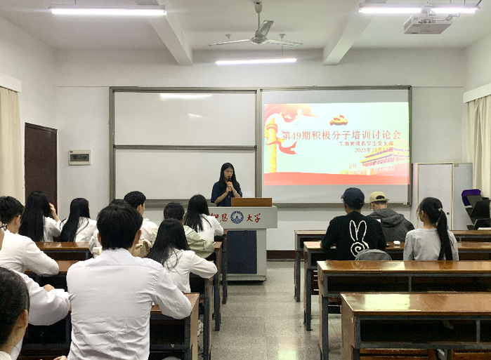 为提高入党积极分子的思想政治素质和政治理论水平,工商管理系学生党支部于2023年10月17日晚,在共和楼303教室召开积极分子讨论交流会。会上各位积极分子同志围绕主题踊跃讨论,气氛活跃,交流了党课学习心得体会,坚定了入党信念和决心。