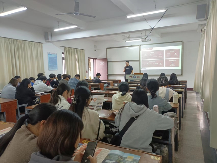 在宣讲会上,德诚珠宝集团有限公司人力资源中心佘剑勇先生与郑守宇先生详细介绍了公司的企业文化、发展历程、人才培养、工作环境、福利待遇及招聘岗位等方面进行介绍,并在现场与同学们进行互动,让同学们对企业有了较全面、深入的了解。
