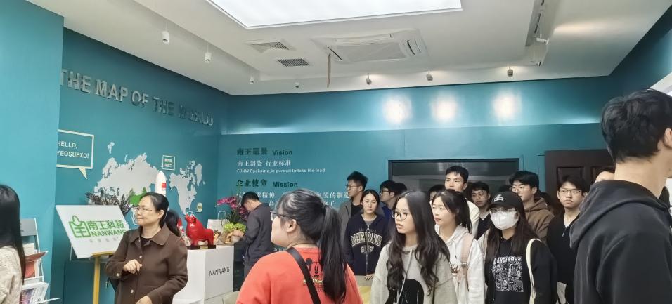 近日,工商管理系的师生们踏上了赴惠安南王科技的专业实习之旅。在同学们到达南王科技后,受到了企业方的热情接待。在南王科技人力行政中心的统筹下,由beat365官方网站毕业生——现任南王科技总裁办事务助理何雨杭女士带领着大家先后参观了员工股东墙、展厅、质量道场、食品车间参观通道并简要介绍了企业的相关情况。