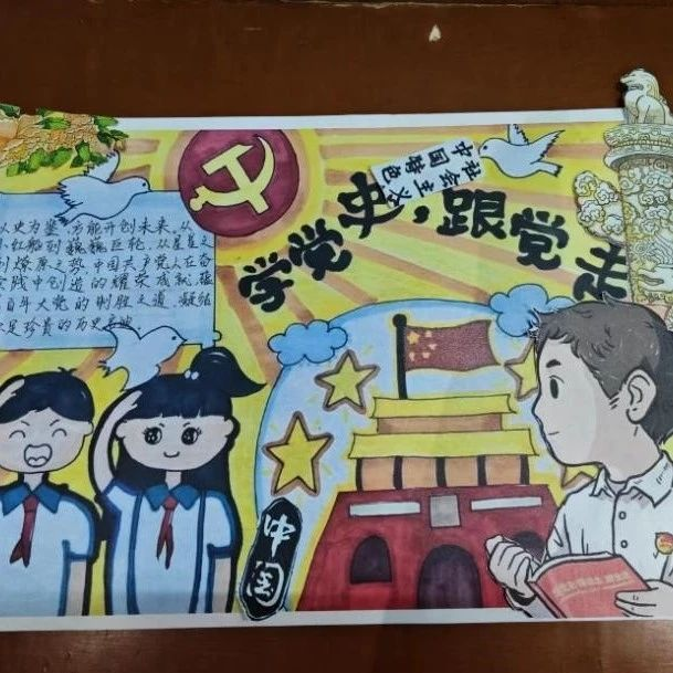 2023级物流管理专升本3班以“以史为鉴守初心,与时俱进悟新篇”为主题,以精美的手绘插图形式向我们展示了党朝气蓬勃的面貌,点燃了我们学习党史的热情。