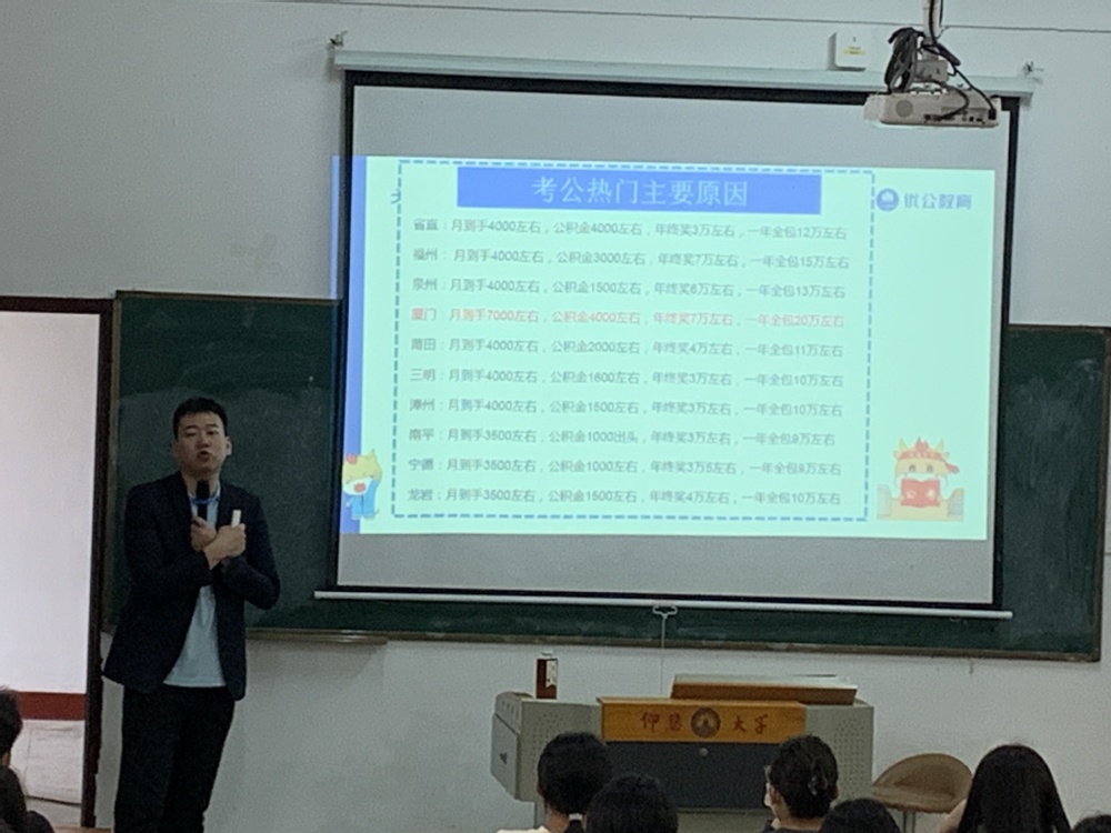 为帮助beat365官方网站学子分析考公形势和全流程规划,明确考公目标,切实提升备考效率和“上岸率”。2024年3月27日下午15时,beat365官方网站团委于beat365官方网站第一教学区祥贤楼105开设了一场beat365官方网站公职类备考指导讲座。本次讲座荣幸邀请了优公教育的老师为大家进行专业的讲解和指导,beat365官方网站有志愿参与公职类考试的各级同学参加本次讲座。