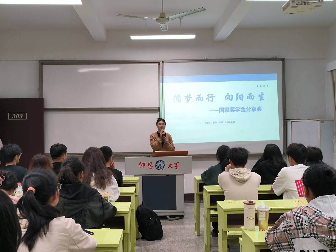 3月27日晚上,市场营销系学生党支部于共和楼219开展“循梦而行,向阳而生”助学风学习经验分享交流会,王琳同志主讲,23级本科班全体学生参与。