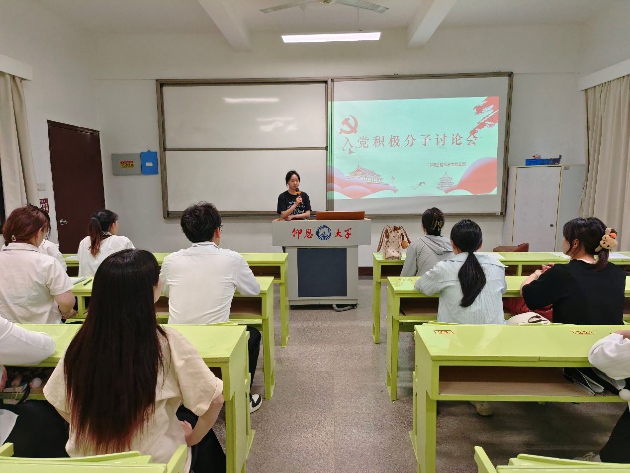 4月18日下午,市场营销系学生党支部于共和楼303开展入党积极分子讨论会。本次讨论会由曾丽莎同志主持,支部书记连景霞、党员林海萍和王琳,以及50期入党积极分子参加。
