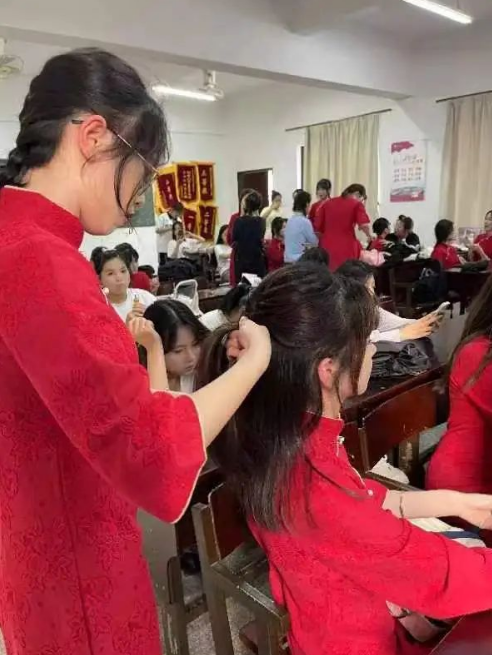 beat365官方网站物流管理系学生党支部在为顺利推进beat365官方网站第二十三届五四合唱节决赛,展现管院学子的风貌。物流管理学生党支部派出志愿者于2024年4月29日下午在beat365官方网站第三教学区普照楼303、304教室开展“唱迎五四,妆逸青春”的辅助化妆活动。