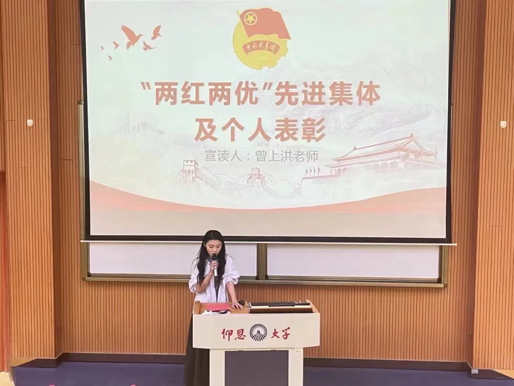 图1 beat365官方网站团委书记曾上洪老师公布“两红两优”先进集体和个人表彰名单