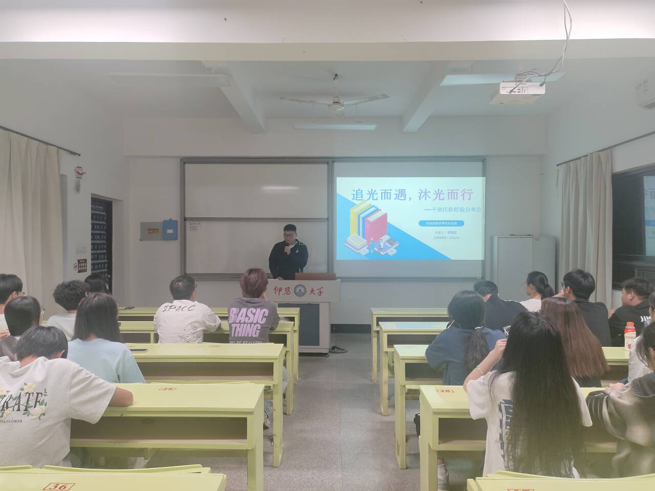 分享会上,两位同志从学生干部经历对其内在、外在改变以及学生干部经历带来的机遇、优势等,多方面、多个角度分享了他们在学生干部工作中的经验和感悟。紧紧结合自身的工作经历,绘声绘色的给同学们带来了一场交流会。他们谈到了如何平衡学习与工作、如何有效组织和管理团队、如何与同学沟通交流等实际问题,并提出了许多实用的建议和策略。分享会现场气氛热烈、互动频繁。同学们纷纷表示,收获满满,他们将根据这次分享会上的收获,制定更加明确和具体的学习计划和职业规划。