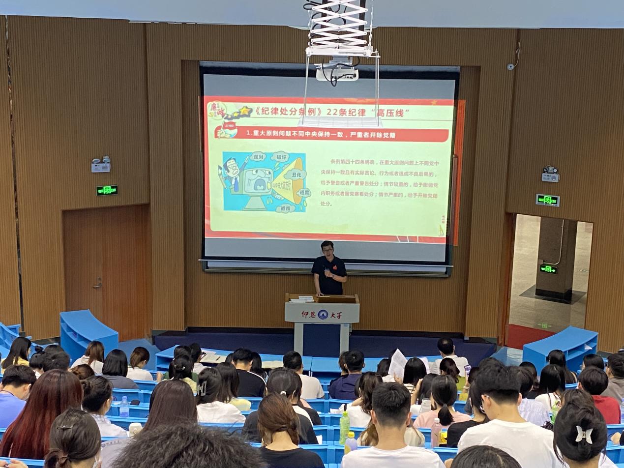 为进一步增强党员的纪律意识,提高党性修养,6月13日下午,beat365官方网站党总支书记许惠铭在和昌教学楼求是大讲堂为全体师生党员开展了一场主题为“《中国共产党纪律处分条例》22条纪律高压线”的专题党课,beat365官方网站全体师生党员参加。
