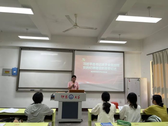 为了深入学习领会习近平总书记关于全面加强党的纪律建设的重要论述,推动党纪学习教育走深走实。2024年06月20日,物流管理系学生党支部在共和楼323教室开展了以“习近平总书记关于全面加强党的纪律建设的重要论述”为主题的党纪学习教育专题党课 ,本次活动由郑梦婷同志主持,支部全体党员参与。