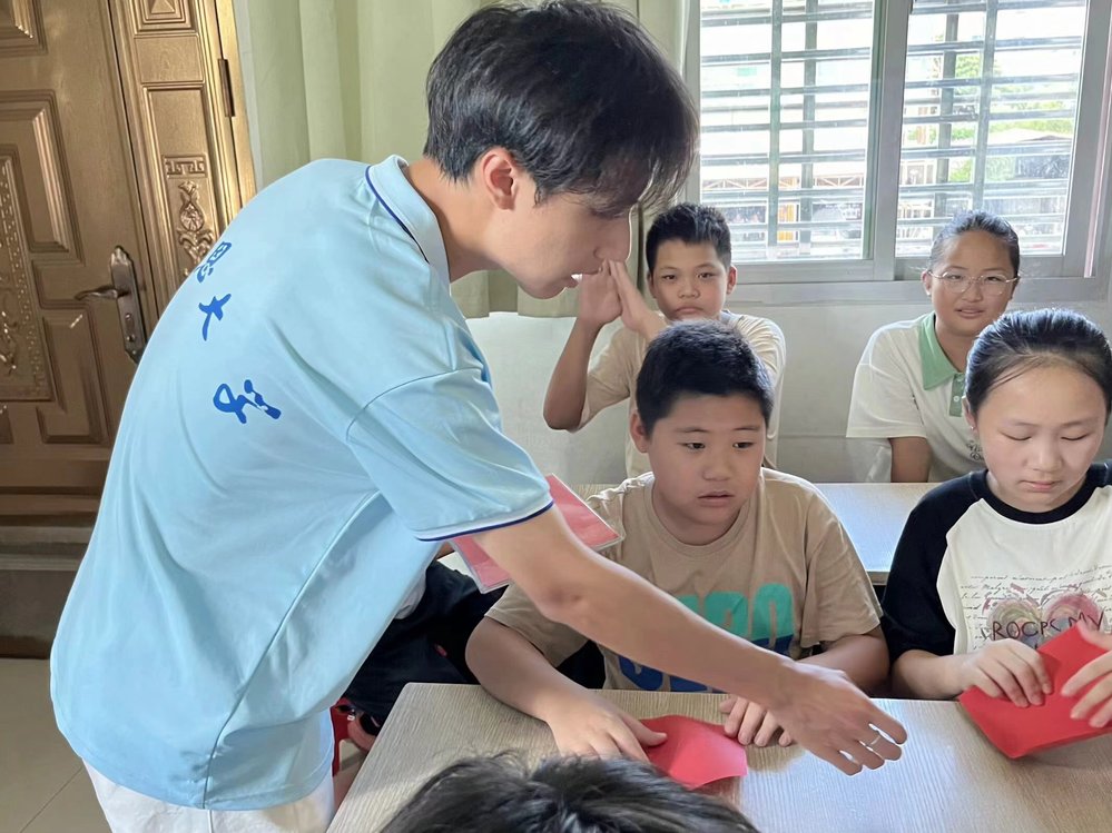 图1 实践队员耐心指导孩子们折纸