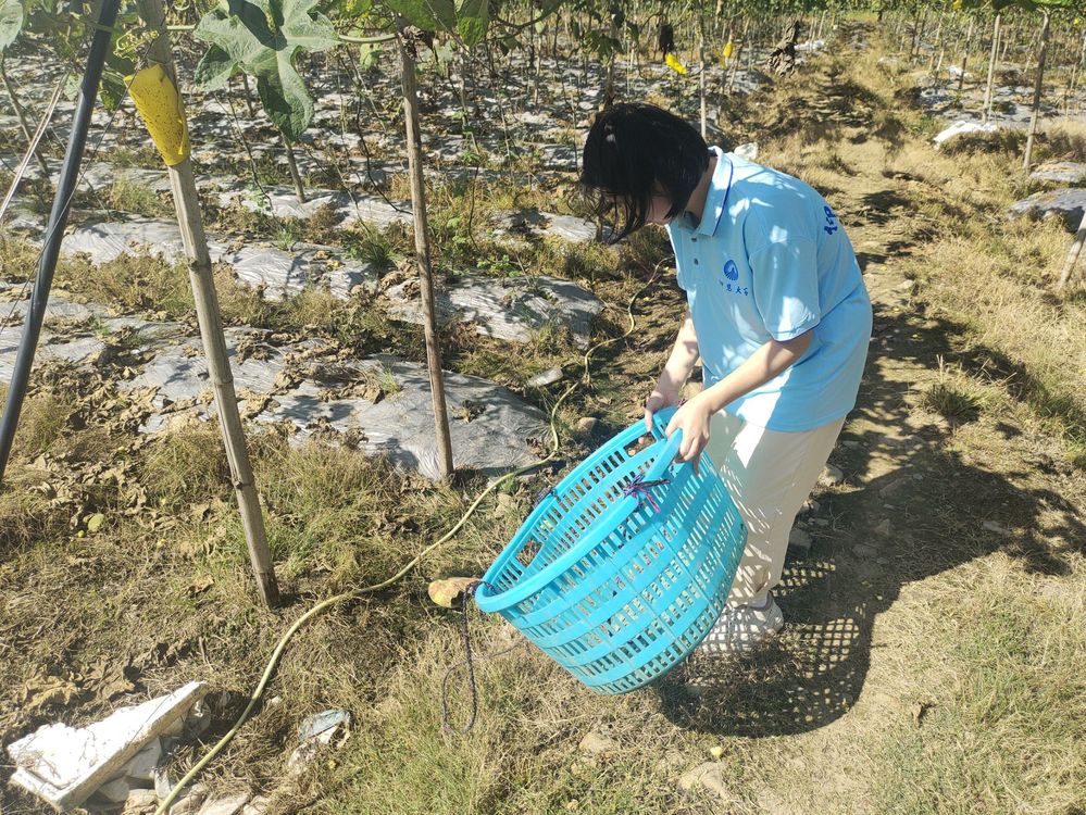 面对乡村农业现代化进程中的挑战,实践队展现出青年学子的创新思维和实干精神,以实际行动深入探索农业转型的路径。实践队深入金淘镇的特色农场,与当地农民交流,详细了解了当地农业发展的历史脉络与现代化进程中的机遇与挑战。通过实地考察,队员们对如何结合传统农耕智慧与现代科技,提升农业生产效率,拓宽农产品市场渠道有了更深入的理解和思考。在农民的指导下,实践队员们掌握了农耕技术,在汗水中体会到了农耕的艰辛与乐趣,深刻理解了“一分耕耘,一分收获”的真谛,更加坚定了投身乡村振兴的决心。