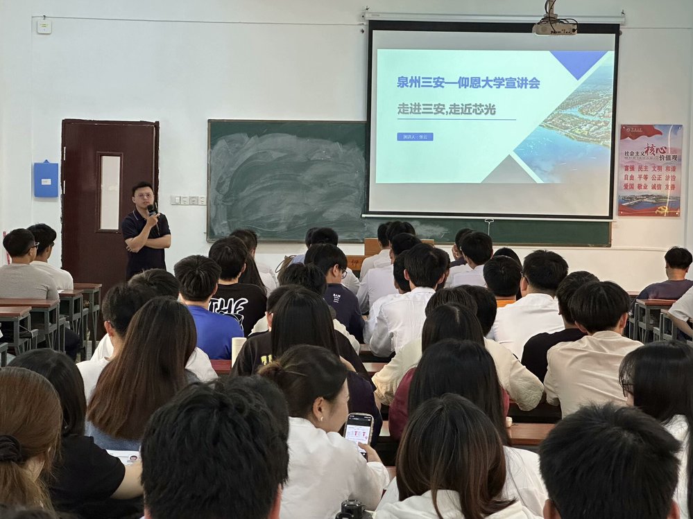 宣讲会上,三安光电企业代表人员介绍了公司的发展历程、业务范围、企业文化及招聘岗位。同时,他结合实际案例和自身工作经验为同学们讲解相关工作背景,使同学们对三安光电企业以及相关行业前景有了更加深入的了解。