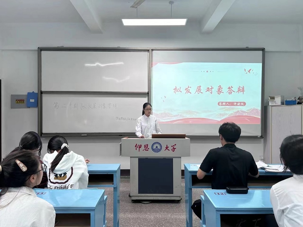 随后,现场答辩在党支部书记林有桂的主持下有序进行。此次拟发展对象答辩会主要分为三个部分,分别是自我陈述、党员提问和支部书记总结。拟发展对象们围绕自我介绍、在积极分子期间的经历、现实表现、与之前相比的成长、现阶段的不足等方面的内容进行汇报。各位拟发展对象以积极进取的态度阐述了自己为入党所付出的努力,并表示今后将更加严以修身、严以律己,以实际行动积极向党组织靠拢。