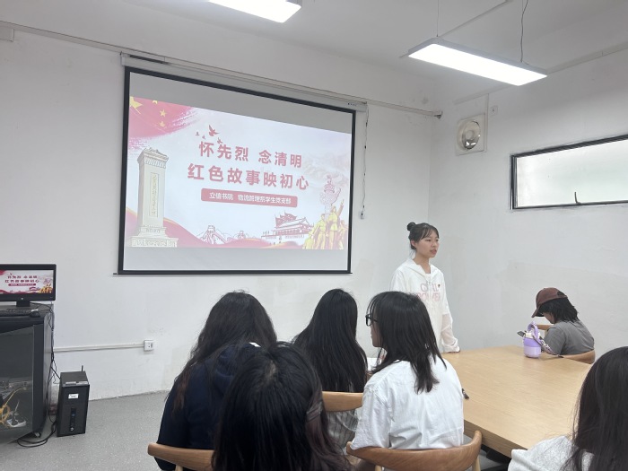 为传承红色基因,厚植爱国情怀,在清明节来临之际,物流管理系学生党支部联合立信书院于2025年04月10日在立信书院党建活动室举办“怀先烈、念清明,红色故事映初心”主题党建活动。本次活动由物流管理系学生党支部同志何芷璇主持,活动以红色故事分享为载体,通过三位同志的深情讲述,带领全体参会成员重温革命历史,汲取奋进力量。