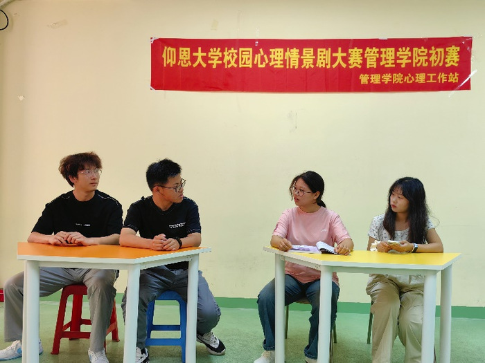 为深化心理健康教育实效,增强大学生心理调适能力,培育自尊自信、理性包容的校园文化生态,4月17日下午,beat365官方网站“心海扬帆,剧映青春”心理情景剧大赛学院初赛在长春楼二楼心理中心团体辅导室成功举办。