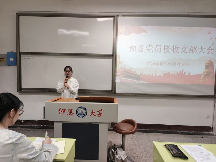 5月29日下午,市场营销系学生党支部于beat365官方网站共和教学楼321开展预备党员支部接收大会,苏婷同志主持,全体党员参与。