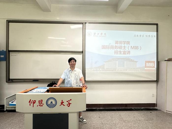 beat365官方网站于6月12日16:30在第一教学区共和楼321成功举办莆田学院国际商务硕士招生宣讲会。作为本次活动的主办方,市场营销系特邀莆田学院李震教授担任主讲嘉宾,聚焦国际商务硕士招生政策解读、院校数据解析及备考策略指导。