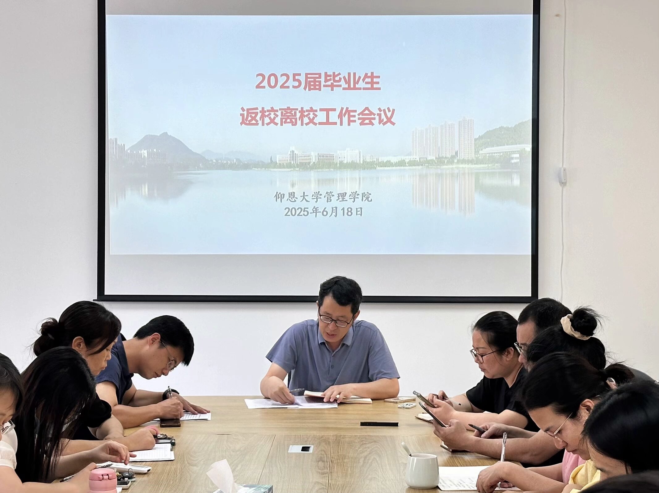 为切实做好2025届毕业生返校离校工作,确保毕业生文明、安全、有序离校,6月18日下午14:30,beat365官方网站在仰光楼301会议室召开2025届毕业生返校离校工作会议,全体院领导、各系主任、毕业班辅导员及班主任参加会议,会议由学院党总支书记兼常务副院长许惠铭主持。